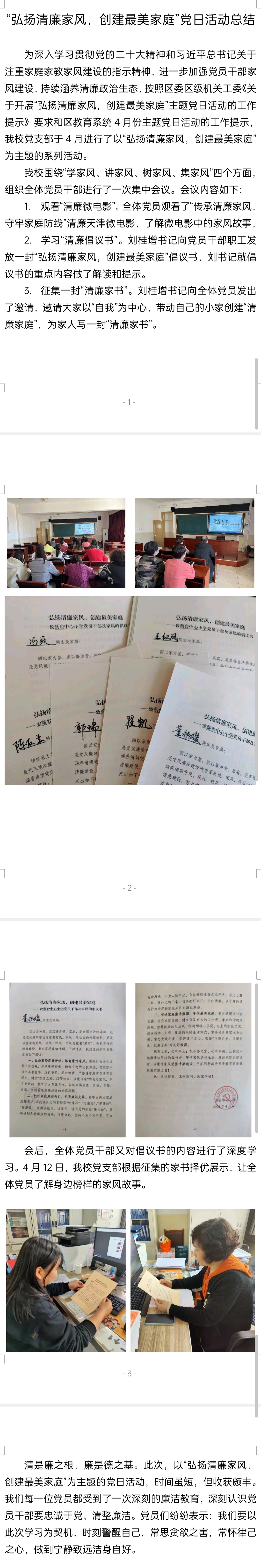 蔡台小学党支部“弘扬清廉家风,创建最美家庭”主题党日活动总结