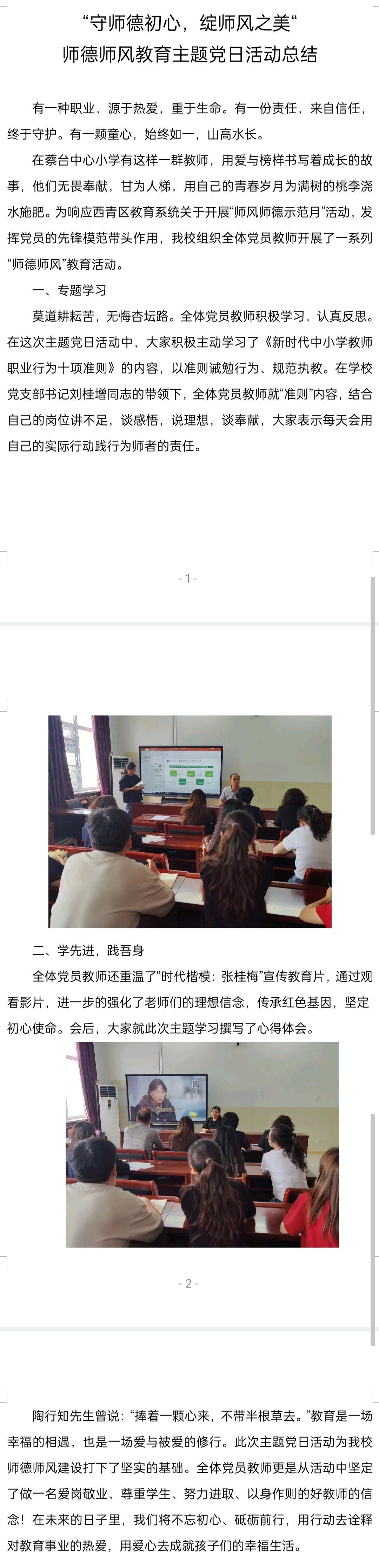 “守师德初心,绽师风之美“师德师风教育主题党日活动总结